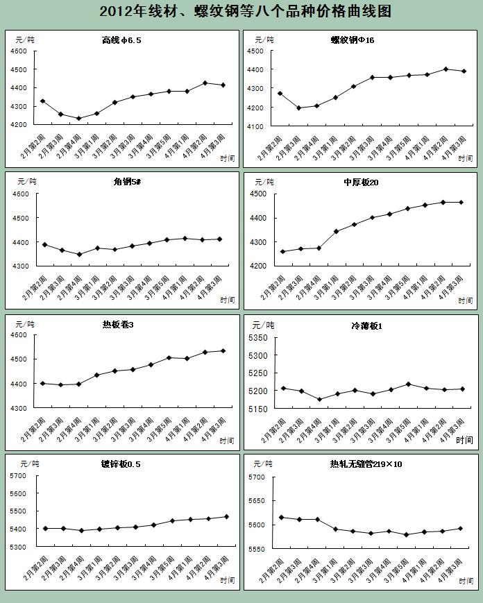 注:2012年3月末國際鋼材市場鋼材綜合價格指數(shù)為196.9點(diǎn),比上月上升0.3點(diǎn);長材價格指數(shù)為219點(diǎn),下降1.4點(diǎn);板材價格指數(shù)為185.9,上升1.1點(diǎn)。