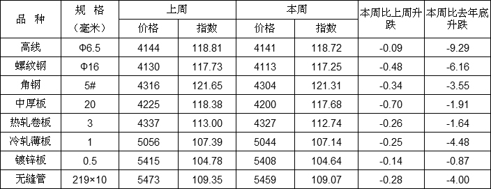 2012年6月4日-6月8日國(guó)內(nèi)市場(chǎng)八個(gè)品種價(jià)格及指數(shù)(含稅價(jià))