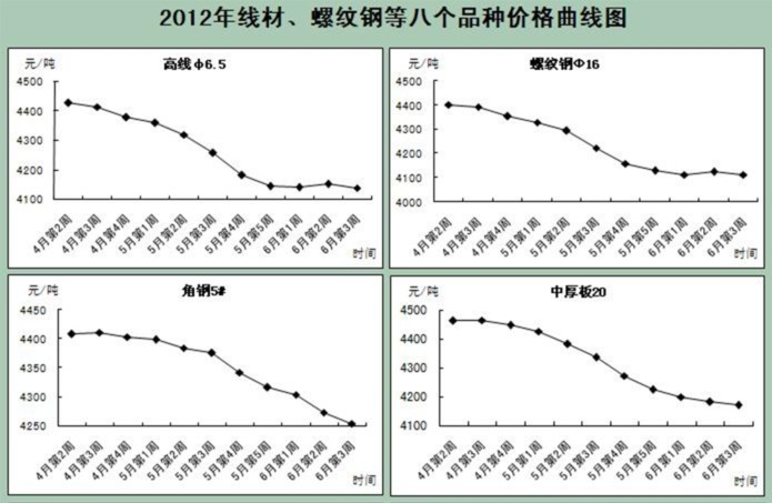 注:2012年5月末國(guó)際鋼材市場(chǎng)鋼材綜合價(jià)格指數(shù)為194.7點(diǎn),比上月下降3.8點(diǎn);長(zhǎng)材價(jià)格指數(shù)為219.6點(diǎn),與上月持平;板材價(jià)格指數(shù)為182.4點(diǎn),下降5.6點(diǎn)。