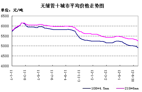 2012年7月19日,通鋼磐石對(duì)無(wú)縫管產(chǎn)品出廠價(jià)格進(jìn)行調(diào)整:無(wú)縫管出廠價(jià)格在上期價(jià)格的基礎(chǔ)上下調(diào)100元/噸,F(xiàn)20#57*3.5表列為5460元/噸,20#108*4.5表列價(jià)為5120元/噸。(以上價(jià)格政策為出廠含稅,自2012年7月19日起執(zhí)行。)