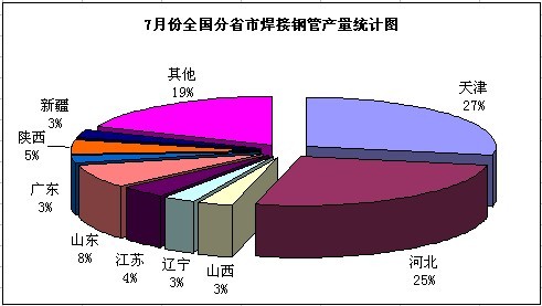 據(jù)國(guó)家統(tǒng)計(jì)局?jǐn)?shù)據(jù)顯示,我國(guó)7月份粗鋼產(chǎn)量6169.3萬(wàn)噸,同比增長(zhǎng)4.2%;上半年累計(jì)產(chǎn)量41945.8萬(wàn)噸,同比增長(zhǎng)2.1%。我國(guó)7月份焊管產(chǎn)量425.3萬(wàn)噸,較上月減產(chǎn)5.3萬(wàn)噸,環(huán)比下降1.23%。較上年同期增產(chǎn)25.5萬(wàn)噸,同比增幅6.3%。1-7月份我國(guó)焊管總產(chǎn)量達(dá)2653.5萬(wàn)噸,同比增速27.86%。