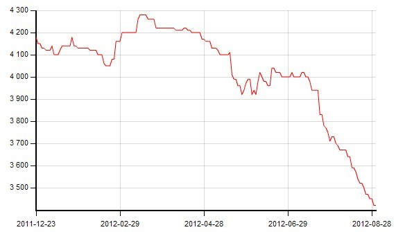 | 8月31日 | 3420 | 3450 | 3700 | 3920 | 3800 | 3650 | 3810 | 4000 | 3900 | 3630 |