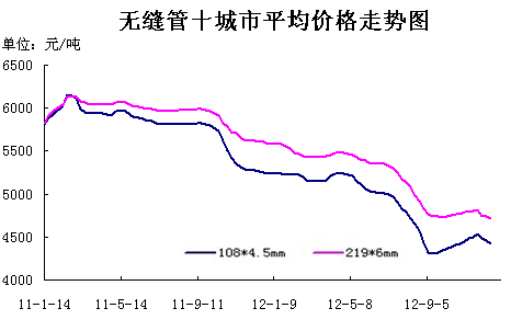 西北地區(qū)無縫管市場價格弱穩(wěn)運行,其中西安108*4.5市場價格4400元/噸。因鋼材市場早已進入淡季市場成交低迷,再加上原材料價格的支撐,無縫管市場價格大幅調(diào)整的可能性不大,貿(mào)易商多采取暫穩(wěn)觀望的策略。