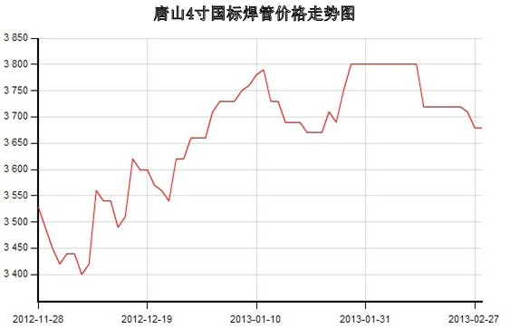 2、鋼廠方面:三大龍頭企業(yè)寶鋼、武鋼及鞍鋼3月份鋼材銷售政策以提價(jià)為主,主要鋼材品種漲幅多在180-300元/噸,推漲意愿明顯,雖對(duì)本月內(nèi)鋼市影響力度較小,但隨后期需求逐步回暖,商家在成本壓力下拉漲預(yù)期明顯。另?yè)?jù)華北帶鋼研討會(huì)議來(lái)看,2013年3月帶鋼指導(dǎo)價(jià)格:1、420mm以下規(guī)格掛牌指導(dǎo)價(jià)3750元/噸;2、420mm以上規(guī)格掛牌指導(dǎo)價(jià)3850元/噸。此指導(dǎo)價(jià)位高于現(xiàn)唐山管廠報(bào)價(jià),或一定程度上助漲管廠提價(jià)。