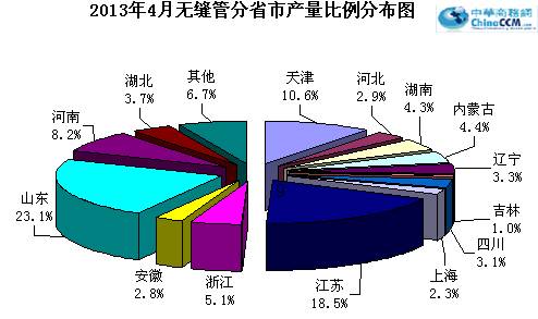 4月份國內(nèi)無縫管產(chǎn)量超過10萬噸的地區(qū)有八個,分別是江蘇、山東、天津、河南、浙江、內(nèi)蒙、湖南和湖北,累計產(chǎn)量占當(dāng)月總產(chǎn)量的77.82%。4月份26個主產(chǎn)區(qū)中有13個地區(qū)環(huán)比3月份減產(chǎn),累計環(huán)比3月減產(chǎn)32.4萬噸,其中浙江地區(qū)減產(chǎn)量最大,減產(chǎn)6.5萬噸,占總減產(chǎn)量的20.06%。13個主產(chǎn)區(qū)環(huán)比3月產(chǎn)量有所增加,累計增產(chǎn)118.6萬噸。其中江蘇地區(qū)增產(chǎn)35.8萬噸,占累計增產(chǎn)30.19%。(參見:圖一、圖二)