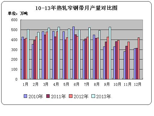 2013年1-9月份累計生產熱軋窄帶鋼4570.5萬噸,累計進口熱軋窄帶鋼6.78萬噸,累計出口熱軋窄帶鋼11.62萬噸,2013年1-9月份累計新增資源4565.66萬噸。