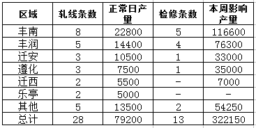 中商網(wǎng)訊:本周唐山20家232系列帶鋼廠28條帶鋼生產(chǎn)線(xiàn)中,13條帶鋼線(xiàn)檢修或停產(chǎn),影響產(chǎn)量32.215萬(wàn)噸,產(chǎn)能利用率為41.89%,較上周下降1.81%,15條帶鋼線(xiàn)開(kāi)工生產(chǎn),開(kāi)工率53.57%,較上周持平。。