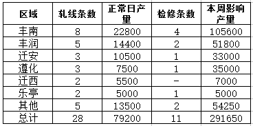 中商網(wǎng)訊:本周唐山20家232系列帶鋼廠28條帶鋼生產(chǎn)線中,12條帶鋼線檢修或停產(chǎn),影響產(chǎn)量29.17萬(wàn)噸,產(chǎn)能利用率為47.39%,較上周下降0.27%,16條帶鋼線開(kāi)工生產(chǎn),開(kāi)工率57.14%,較上周下降3.57%。