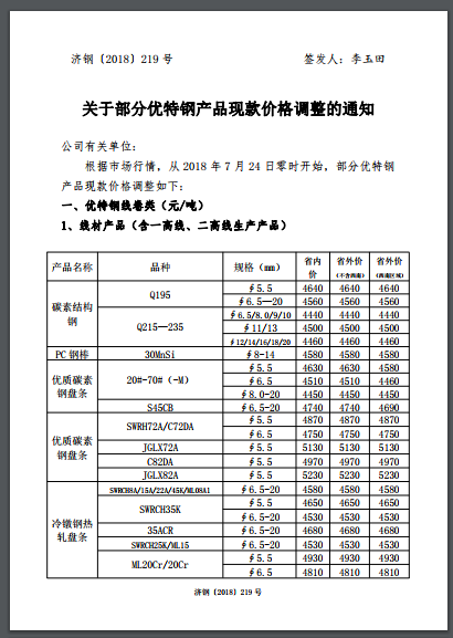 (關(guān)鍵字:濟(jì)源鋼鐵 管坯 出廠價(jià))