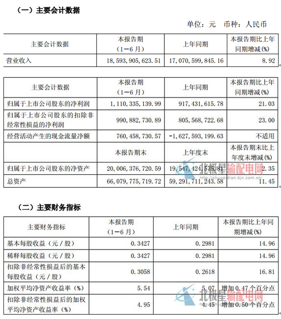 2015 年上半年,公司實現(xiàn)營業(yè)收入 185.94 億元,利潤總額 13.52 億元,凈利潤 11.80 億元,歸屬于上市公司股東的凈利潤 11.10 億元;與 2014 年上半年相比分別增長 8.92%、24.58%、21.67%、21.03%。