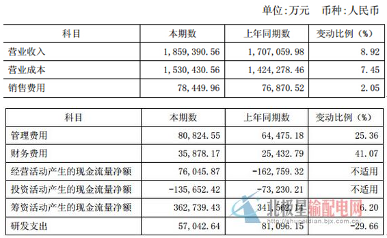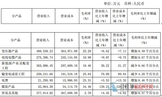 報告期,公司變壓器產(chǎn)品營業(yè)收入較上年同期下降 6.62%、營業(yè)成本較上年同期下降 7.11%,主要系市場競爭加劇所致;毛利率較上年同期增加 0.39 個百分點,主要系公司實施精益化管理,加強(qiáng)成本管控所致。