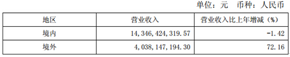 報告期,公司境外營業(yè)收入較上年同期增長 72.16%,主要系公司大力實施“走出去”戰(zhàn)略,積極開拓國際市場及公司境外控股公司特變電工能源(印度)有限公司營業(yè)收入增長所致。