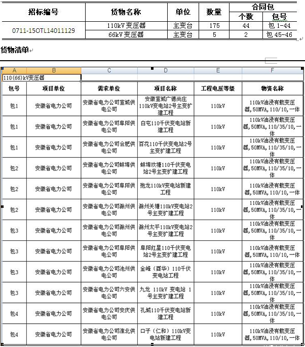 國網(wǎng)變電項目2015年新增批次貨物集中招標—110(66)kV變壓器