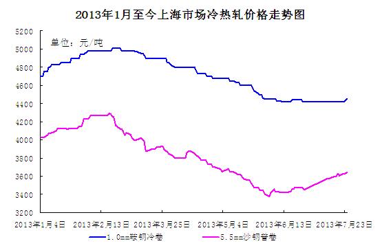 圖一:2013年1月至今上海市場冷熱軋價格走勢圖