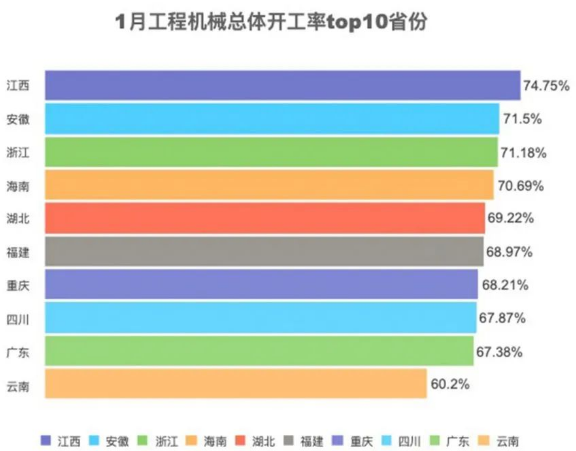 2024年1月工程機(jī)械總體開工率前10省份出爐