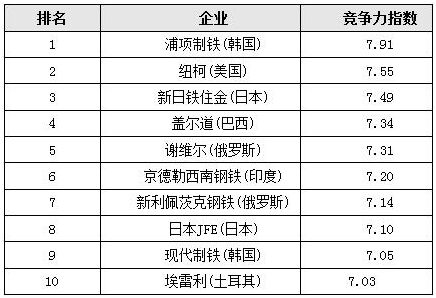 世界最具競爭力鋼企排行榜發(fā)布 中國鋼企無一進(jìn)前十