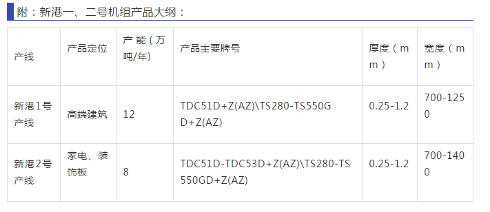 寶鋼黃石新港區(qū)域是按照寶鋼股份的發(fā)展規(guī)劃,本著節(jié)能、環(huán)保的發(fā)展趨勢(shì),定位高端建材、家電、裝飾用板,一期建設(shè)一條20萬(wàn)噸熱鍍鋁鋅機(jī)組、一條12萬(wàn)噸建筑彩涂機(jī)組、一條8萬(wàn)噸家電及裝飾彩涂機(jī)組,其中家電及裝飾彩涂機(jī)組也將于近期投產(chǎn)。