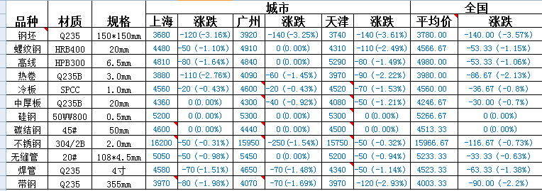 13日調(diào)價:昨日唐山普方坯漲20,150方坯國義、興隆3680,矩形坯3680,低合金坯3780。