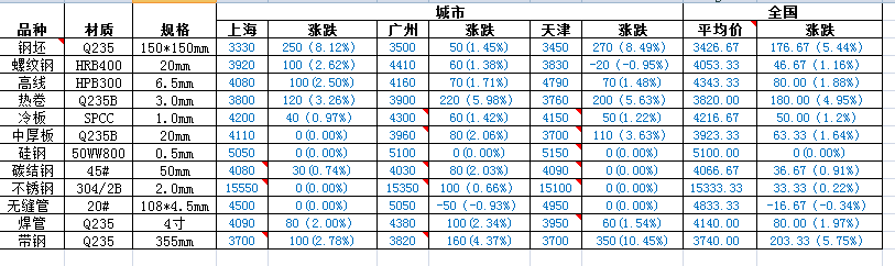4日早間:昨日唐山普方坯漲100,140/150方坯國(guó)義、興隆3330,矩形坯3330,低合金坯3430。