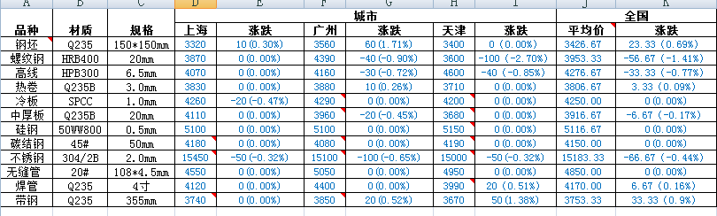 11日早間:昨日唐山普方坯降40,140/150方坯國(guó)義、興隆3280,矩形坯3280,低合金坯3380。