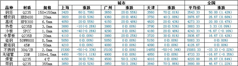 26日早間:昨日唐山普方坯降40,140/150方坯國義、興隆3350,矩形坯3350,低合金坯3450。
