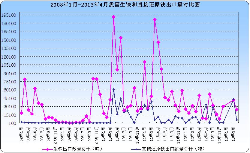 據(jù)海關(guān)統(tǒng)計(jì)最新數(shù)據(jù)顯示:2013年4月我國非合金生鐵出口量為20878.344噸,同比增加0.6%。我國直接還原鐵出口量為5652噸,同比減少48%。