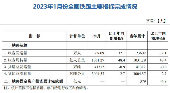2月13日,國家鐵路局公布數(shù)據(jù),2023年1月,鐵路固定資產(chǎn)投資完成379億元,同比下降4.8%。