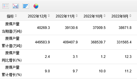 在此前公布的國(guó)家統(tǒng)計(jì)局月度統(tǒng)計(jì)數(shù)據(jù)中,2022年我國(guó)全年原煤產(chǎn)量為449583.9萬噸。