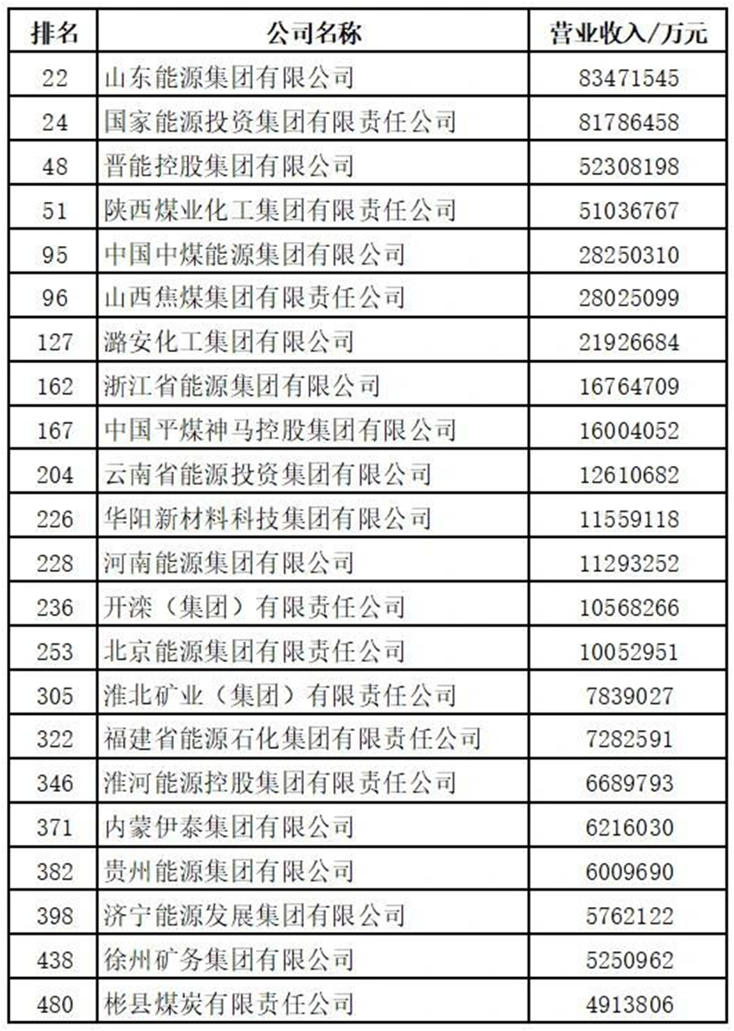 22家煤炭企業(yè)上榜2023中國企業(yè)500強