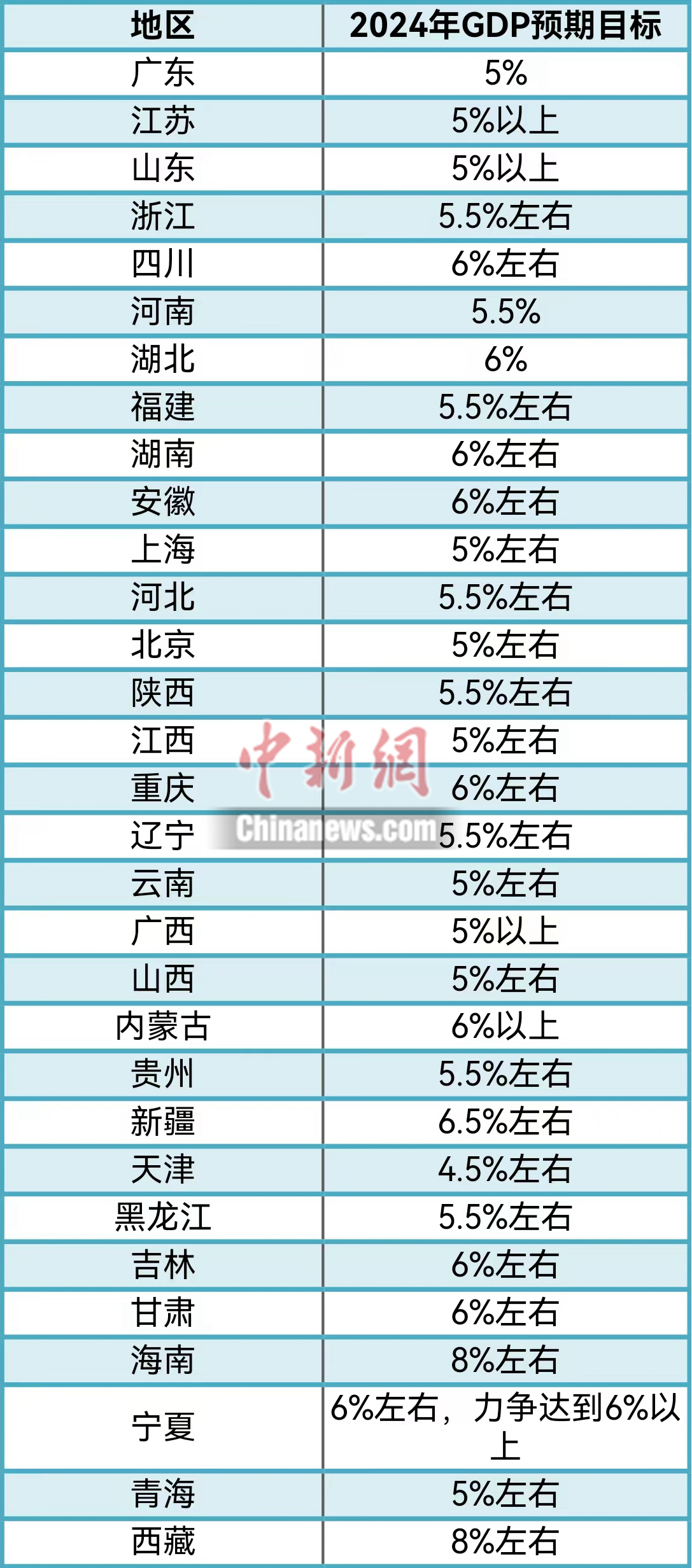從各個省份敲定的新年GDP目標來看,絕大多數(shù)省份不低于5%,其中,海南、西藏均將2024年增速目標設為8%左右,為全國最高。