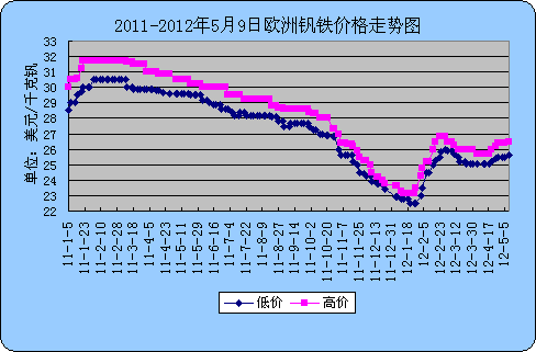 本周國(guó)際方面,歐洲釩鐵價(jià)格再度回升,由25.5-26.4美元/千克釩上調(diào)至25.65-26.5美元/千克釩,未有明顯起色。鑒于該價(jià)格與國(guó)內(nèi)釩鐵當(dāng)前價(jià)格基本持平,出口企業(yè)期待后期出口能夠借此好轉(zhuǎn)。另外,歐洲五氧化二釩價(jià)格仍為5.7-6.2美元/磅,美國(guó)釩鐵價(jià)格則繼續(xù)維持在14.5-16美元/磅釩的高位。