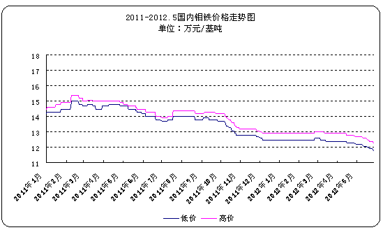 近期鉬鐵市場價格陰跌不止,終端需求不旺,鋼廠招標價格壓低,國內(nèi)鉬鐵市場價格承壓下滑,目前市場報價已經(jīng)下跌至11.8-12.3萬元/基噸。據(jù)本網(wǎng)了解,鉬鐵現(xiàn)貨市場報價多集中在11.8-11.9萬元/基噸左右,然而成交方面表現(xiàn)平淡,11.9萬元/基噸的價位成交困難。面對著市場的持續(xù)走低,鉬鐵冶煉企業(yè)艱難前行,勉力維持生產(chǎn)。
