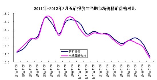 八月,五礦黑鎢標(biāo)礦報價10.7萬,同期市場價格10.4萬,對比五礦報價,多少都是高于市場同期,但是市場價格都是圍繞五礦報價上下波動,自五礦報價以來,第一次價格低于11萬,市場不給力,鎢價被下調(diào)~~~
