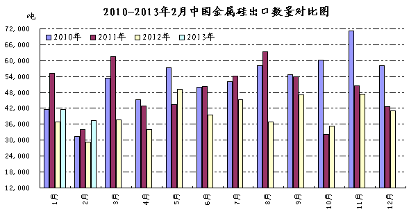 • 2013年2月中國金屬硅(28046900)出口量約為3.73萬噸,環(huán)比2013年1月的.........