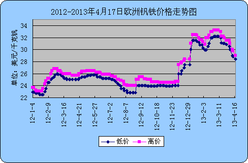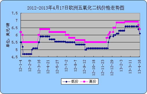 2012-2013年4月17日歐洲釩鐵與五氧化二釩價(jià)格走勢(shì)圖: