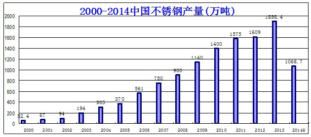 高速增長10多年的中國不銹鋼產(chǎn)業(yè)在2014年也首次迎來了旺季減停產(chǎn)的痛苦。2014年1-6月,中國不銹鋼粗鋼產(chǎn)量1068.7萬噸,同比增長16.7%。上半年的全球不銹鋼粗鋼產(chǎn)量2090萬噸,同比增長10.6%。