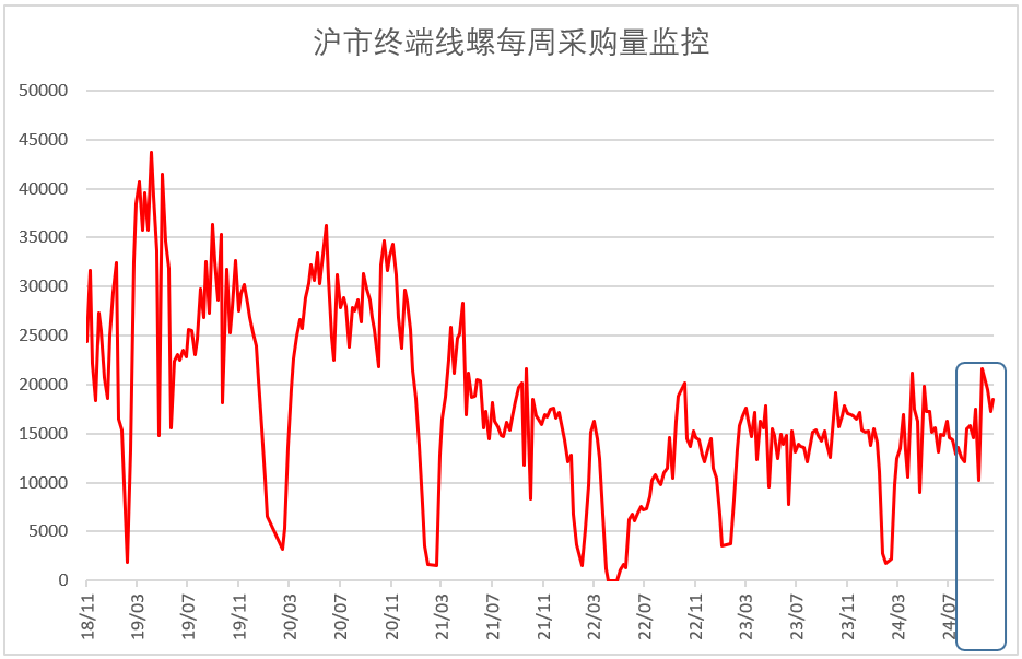 圖3 2018年以來滬市終端線螺每周采購量監(jiān)控數(shù)據(jù)變化情況