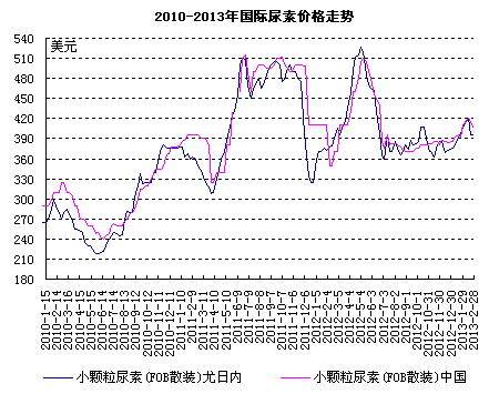 國際尿素市場在多年的操作中也形成了相對(duì)平衡的供求體系,一旦中國大幅降低尿素出口關(guān)稅,必然會(huì)對(duì)國際市場大環(huán)境造成影響。整體價(jià)格走低只是一個(gè)方面,更有可能出現(xiàn)惡性競爭?紤]到中國尿素生產(chǎn)成本尚且高于國際大多數(shù)出口國,價(jià)格競爭不存在優(yōu)勢。況且,采購國也會(huì)對(duì)中國今年的低關(guān)稅進(jìn)行理性評(píng)估。這將使中國2013年尿素出口總量不會(huì)有太大的增長空間。而且從國際尿素價(jià)格二月下旬的波動(dòng)中,就可以看到外商之間的競爭壓力。
