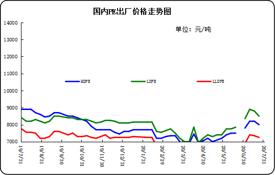 2020年7月國內(nèi)PE出廠價格走勢圖