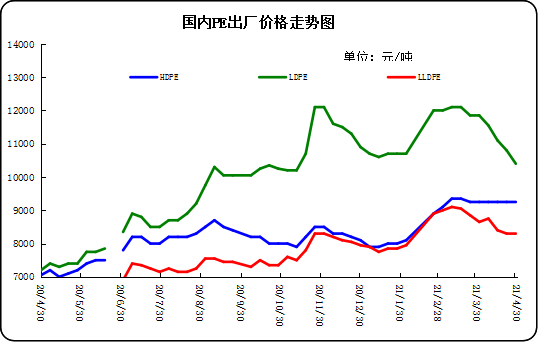 1.2 2021年4月國(guó)內(nèi)PE出廠價(jià)格走勢(shì)圖
