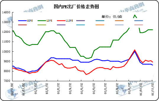 1.2 2021年11月國(guó)內(nèi)PE出廠價(jià)格走勢(shì)圖