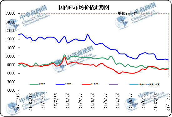 本周國(guó)內(nèi)市場(chǎng)小幅上漲,走勢(shì)向好但趨于平穩(wěn),當(dāng)前市場(chǎng)行情走高,前期原油價(jià)格上漲提供支撐,期貨收盤指引上漲,整體向好,后期原油價(jià)格回落,市場(chǎng)走勢(shì)趨近平穩(wěn),但較上周趨勢(shì)依舊走高。本周原油國(guó)際價(jià)格震蕩,乙烯價(jià)格平穩(wěn)運(yùn)行,從原料面來(lái)看有一定支撐,下游旺季預(yù)結(jié)束,市場(chǎng)面需求開(kāi)始降低,但近期政策影響,各地物流恢復(fù),市場(chǎng)面庫(kù)存開(kāi)始減少,市場(chǎng)價(jià)格還存在上調(diào)空間。當(dāng)前市場(chǎng)價(jià)格小幅上調(diào),貿(mào)易商出貨積極性有好轉(zhuǎn),下游采購(gòu)需求逐漸走弱,貨物流通較多,市場(chǎng)價(jià)格穩(wěn)中小漲。
