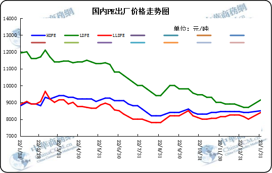 1.2 2023年1月國內(nèi)PE出廠價格走勢圖