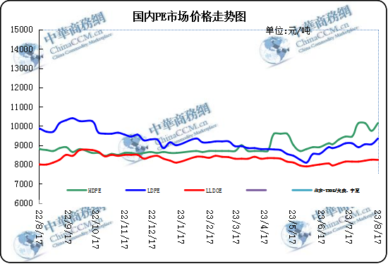 本周聚乙烯市場平均價格上漲,本周上游原料支撐偏弱。市場方面,本周市場行情一改頹勢,周前期上漲勢頭強勁,價格一路高升,臨近周末價格開始回落,但讓處于較高水平。目前下游采購量并未有所好轉(zhuǎn),市場供需仍存,再加上市場價格多數(shù)上漲的情況下,下游對于高價原料的抵觸心理激增,主要是因為下游旺季并未到來,訂單量并未過多,對于高成本的原料需求自然不大。期貨收盤價格多數(shù)上漲為主,市場面的庫存變動不大,較上周減少1.06%,處于行業(yè)中位水平。本周貿(mào)易商出貨情況跟盤調(diào)整,當(dāng)前市場實際成交價格上漲較快,廠家出廠報價多向上調(diào)整,業(yè)者心態(tài)平穩(wěn)占比較大,交易情況較前期有所好轉(zhuǎn),但并未完全落實到下游。從整體來看本周產(chǎn)量供應(yīng)因部分廠家檢修有所減少,市場需求情況一般,市場庫存小幅減少,倉單庫存無變動,本周聚乙烯價格周末下跌為主,宏觀利好因素主導(dǎo)市場走向。