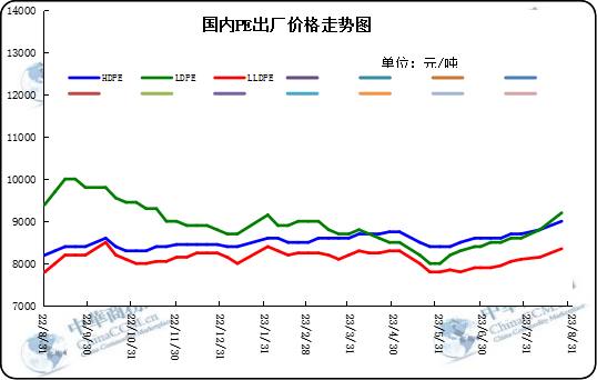 1.2 2023年8月國內(nèi)PE出廠價(jià)格走勢圖