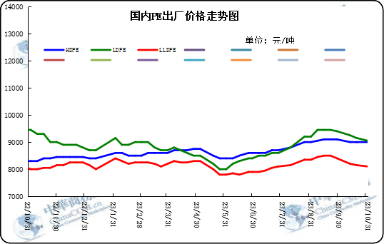 1.2 2023年10月國內PE出廠價格走勢圖