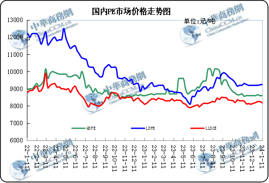 本周國內(nèi)聚乙烯市場價(jià)格震蕩小跌,市場活躍度表現(xiàn)尚可。詳細(xì)來看,需求表現(xiàn)稍顯一般,本周聚乙烯價(jià)格受原料價(jià)格影響較大:其中本周美國庫存增加及供應(yīng)中斷擔(dān)憂,油價(jià)震蕩下行,WTI較上周同期下跌1.83%;乙烯價(jià)格在需求加持下本周上行,較上周同期上漲2.99%。然受原油及市場需求拖累,業(yè)者心態(tài)多看空,聚乙烯期貨市場多飄綠,帶動現(xiàn)貨市場價(jià)格繼續(xù)下行。短期內(nèi)期貨利好因素較為有限,現(xiàn)貨市場需求表現(xiàn)亦清淡,F(xiàn)階段聚乙烯生產(chǎn)廠家繼續(xù)按計(jì)劃檢修生產(chǎn)線,本周裝置檢修數(shù)量較上周繼續(xù)增加,聚乙烯市場內(nèi)供應(yīng)能力繼續(xù)下降。市場內(nèi)供應(yīng)縮緊,供需矛盾適當(dāng)緩解,年前補(bǔ)貨期來臨之前,近幾周需求表現(xiàn)仍持續(xù)疲軟,聚乙烯市場得不到有效支撐,只好延續(xù)弱勢運(yùn)行。本周大型生產(chǎn)商的聚乙烯報(bào)價(jià)跌多漲少,較前期變化幅度縮減。綜上所述,本周聚乙烯市場價(jià)格在多方因素影響下震蕩下行。