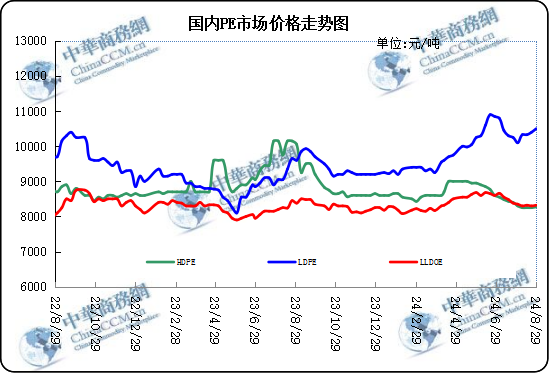 后市預測:本周聚乙烯市場價格震蕩走強,成本端支撐表現(xiàn)尚可,需求端表現(xiàn)一般,聚乙烯市場后續(xù)或?qū)⒗^續(xù)緩慢升溫,預計下周聚乙烯價格或?qū)⒗^續(xù)強勢整理,不排除有期貨強力拉動影響。美聯(lián)儲基本敲定9月降息,有望提振市場情緒,利比亞宣布暫停所有石油生產(chǎn)及出口,將影響石油供應,歐佩克收到伊拉克和哈薩克斯坦的產(chǎn)量補償計劃,減產(chǎn)將為油市托底。乙烯市場供需博弈,當前供方出貨壓力較大,導致價格持續(xù)走低,而下游用戶剛需有限,新單成交氣氛欠佳。成本面對聚乙烯市場支撐一般。近期為雨水多發(fā)季節(jié),發(fā)貨及運輸阻力增加,運費亦有小幅上升。終端開工率持續(xù)緩慢回升,零星下游有小單備貨操作,市場內(nèi)現(xiàn)貨庫存消耗速度亦隨之提升,F(xiàn)階段檢修裝置增加,供應壓力減弱,下周供需面對聚乙烯市場支撐力或?qū)⒃鰪。綜合來看,隨著夏季旺季結束,市場擔憂需求放緩情緒持續(xù),對油市構成壓力,后期市場將不斷權衡供需前景問題,預計下周國際原油價格寬幅震蕩。乙烯成本端支撐不足,臨近月底,下游生產(chǎn)企業(yè)買盤積極性低迷。外盤價格大穩(wěn)小動,場內(nèi)缺乏利好消息,預計下周乙烯市場弱穩(wěn)整理。成本面支撐一般、供需面表現(xiàn)轉好,疊加期貨市場波動等多重因素影響下,聚乙烯后市仍然復雜多變。預計下周國內(nèi)市場價格強勢整理。