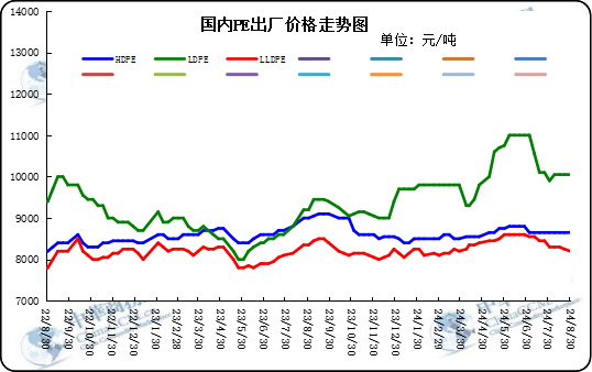 1.2 2024年8月國內(nèi)PE出廠價格走勢圖