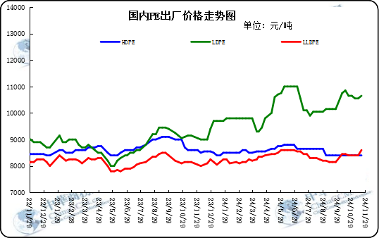 后市預測:本月聚乙烯市場價格受上游原料和國內需求影響,主流期貨盤面震蕩飄紅為主,市場價格漲多跌少,成交價格重心仍偏低位。原料面,市場逐漸淡化中東局勢而重新關注俄烏沖突,俄烏互相發(fā)射導彈導致俄烏沖突進一步升級,特朗普勝選總統(tǒng)后,美元指數(shù)可能偏強運行,且當前美聯(lián)儲降息步伐可能放緩,三大機構月報對原油市場持偏消極態(tài)度。前期乙烯供應緊缺狀態(tài)在山東魯西意外停車后越發(fā)明顯,但十二月份部分前期檢修裝置存重啟計劃,加之部分企業(yè)存投產(chǎn)計劃,乙烯供應存增加預期。成本面對聚乙烯市場支撐有限。綜合來看,下月歐佩克+可能推遲增產(chǎn)計劃,加之俄羅斯及伊拉克等進行補償性減產(chǎn)為市場提供支撐,但非歐佩克國家增產(chǎn)及原油累庫不利市場,未來供需失衡擔憂持續(xù)施壓市場,若下月地緣局勢及減產(chǎn)無明顯利好,國際油價將延續(xù)震蕩偏弱行情。需求端受利潤限制,對高價貨源存抵觸情緒,美金市場受韓國裝置降負荷影響報盤減少,對國內市場指引有限,預計下月國內乙烯市場價格先揚后抑。